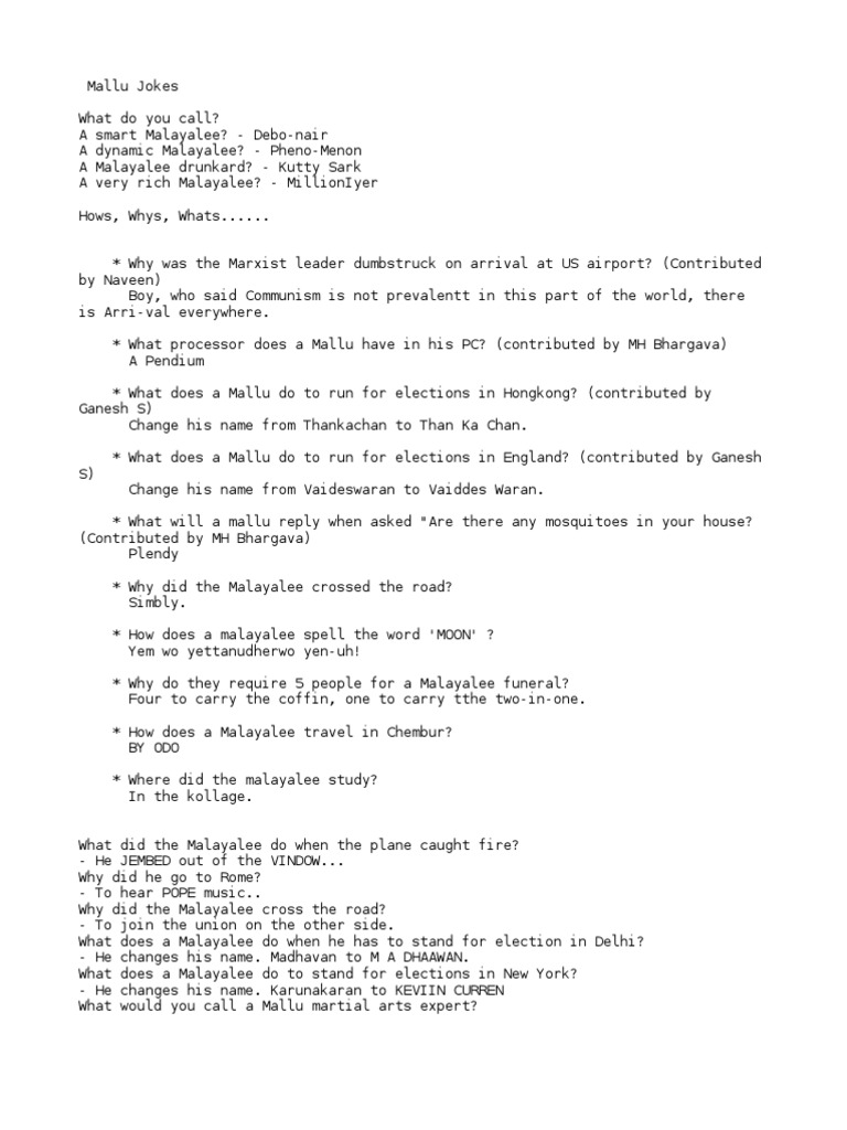 Funny Mallu Jokes - Maybe it's a joke from a funny joke book, the joke of the day, or even some hilarious one liners.