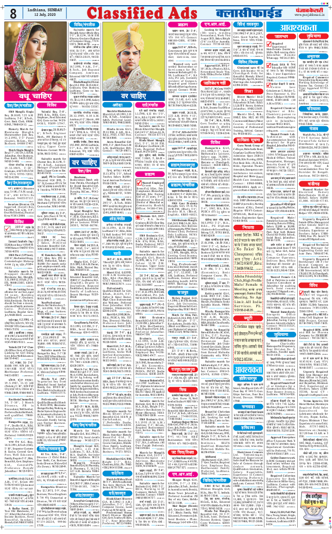Punjab Kesari Matrimonial Page Today / Book punjab kesari matrimonial ads online for publishing in newspaper by.